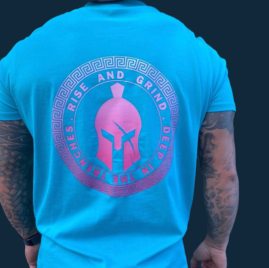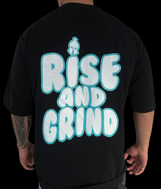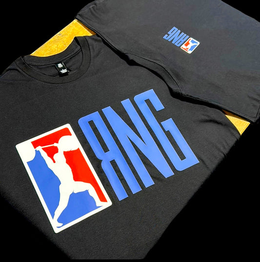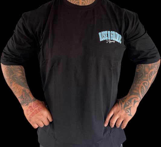 Black heavy oversized Rng monogram tee (neon pink embroidery)